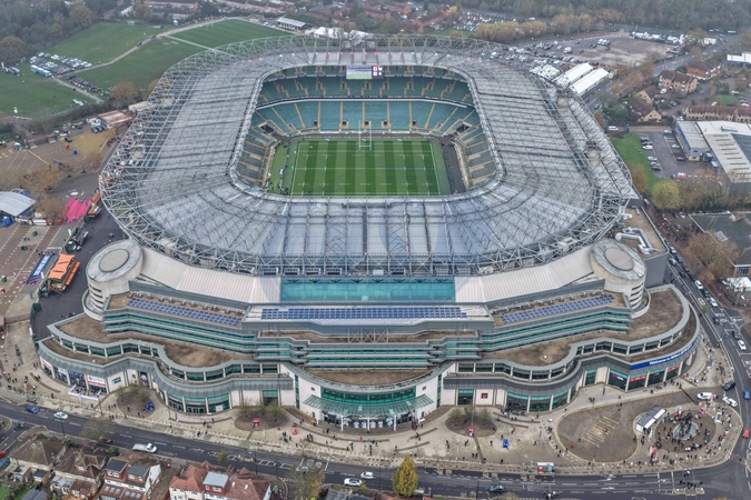 An aerial view of The Allianz Stadium during the Quilter Nations Series 2025 match England vs New Zealand at Allianz Stadium, Twickenham, United Kingdom, 15th November 2025, Credit:Mark Cosgrove/News Images / Avalon