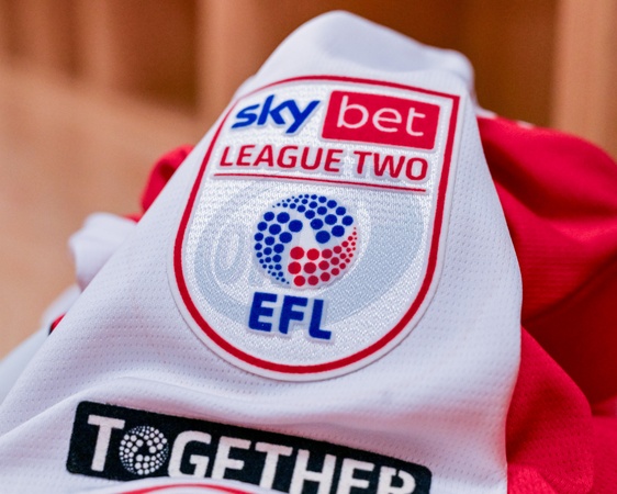 EFL Sky Bet League 2 shoulder badge during the Sky Bet League 2 match Fleetwood Town vs Swindon Town at Highbury Stadium, Fleetwood, United Kingdom, 15th November 2025, Credit:Adam Gee/News Images / Avalon