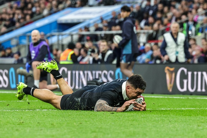 Codie Taylor of New Zealand goes over for a try during the Quilter Nations Series 2025 match England vs New Zealand at Allianz Stadium, Twickenham, United Kingdom, 15th November 2025, Credit:Mark Cosgrove/News Images / Avalon