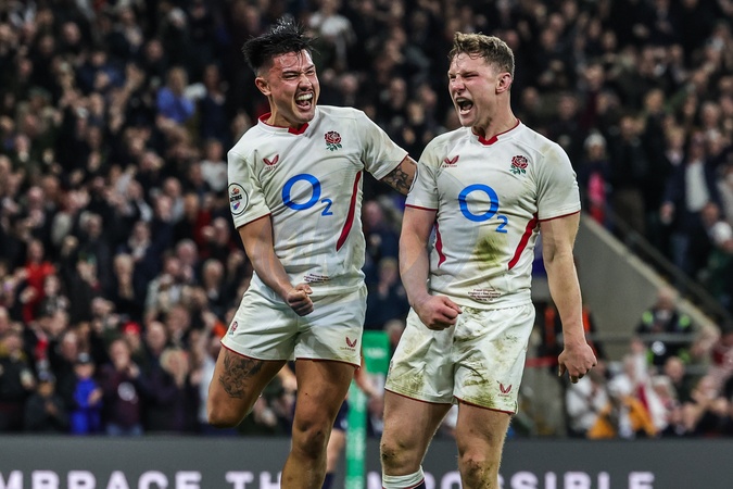 Fraser Dingwall of England celebrates his try during the Quilter Nations Series 2025 match England vs New Zealand at Allianz Stadium, Twickenham, United Kingdom, 15th November 2025, Credit:Mark Cosgrove/News Images / Avalon