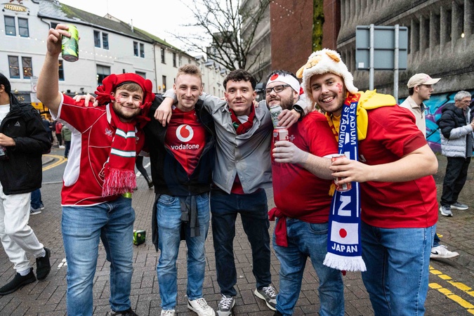 Welsh fans ahead of the Quilter Nations Series 2025 match Wales vs Japan at Principality Stadium, Cardiff, United Kingdom, 15th November 2025, Credit:Andrew Lewis/News Images / Avalon