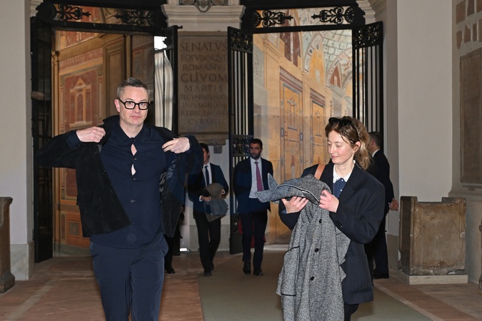 Apostolic Palace, Lapidary Gallery. Interviews - Audience with artists from the world of cinema. Pictured: the director and Alba Rohrwacher. . Vatican City, Italy 15 November 2025, Credit:Maria Laura Antonelli / Avalon