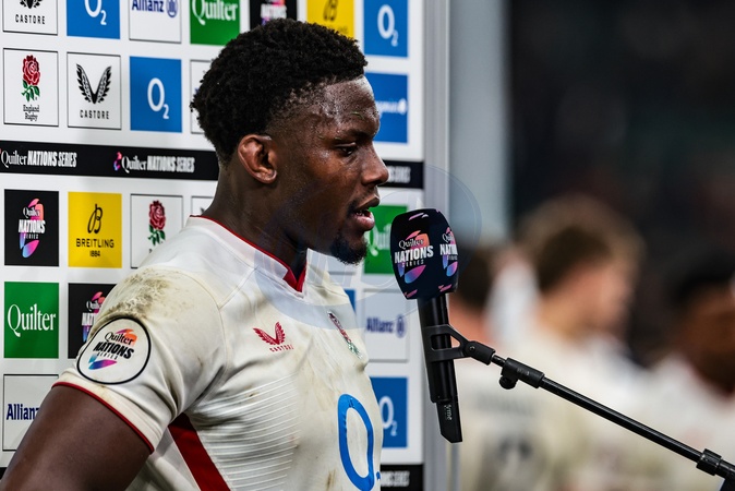 Mario Itoje of England speaks to the press after the game during the Quilter Nations Series 2025 match England vs New Zealand at Allianz Stadium, Twickenham, United Kingdom, 15th November 2025, Credit:Mark Cosgrove/News Images / Avalon