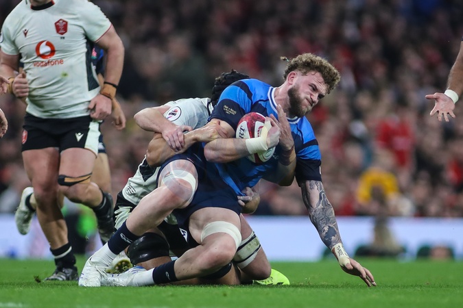 Warner Dearns of Japanv is brought down during the Quilter Nations Series 2025 match Wales vs Japan at Principality Stadium, Cardiff, United Kingdom, 15th November 2025, Credit:Andrew Lewis/News Images / Avalon