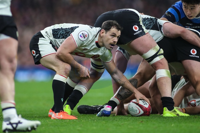 Tomos Williams of Wales during the Quilter Nations Series 2025 match Wales vs Japan at Principality Stadium, Cardiff, United Kingdom, 15th November 2025, Credit:Andrew Lewis/News Images / Avalon