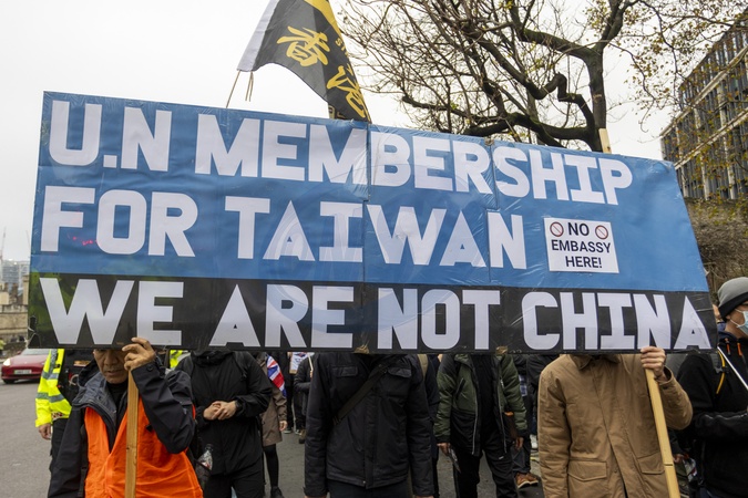 A protest was held outside the Royal Mint in London opposing the construction of China's planned new mega embassy. The demonstration was organised by Hong Kong expatriates, Chinese dissidents, and human rights activists who accused the Chinese government of increasing authoritarian influence abroad. Protesters rallied with banners, flags, and speeches condemning the Chinese Communist Party's human rights violations and warning that the embassy project would expand Beijing's surveillance and intimidation of dissidents in the UK., Credit:Zak Irfan / Avalon
