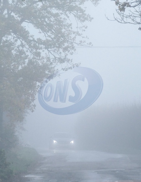 Vehicles drive along the country lanes in the mist., Credit:Geoffrey Swaine / Avalon