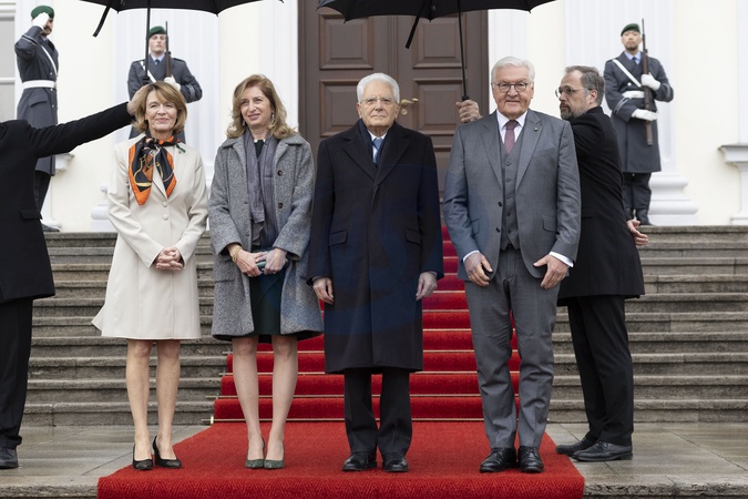 President Sergio Mattarella and Mrs. Laura were welcomed at Palazzo Bellevue by Frank-Walter Steinmeier, President of the Federal Republic of Germany, and his wife, Mrs. Elke Büdenbender. Berlin, Germany 15 November 2025, Credit:Francesco Ammendola / Avalon