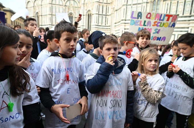 Demonstration in Piazza Duomo in Florence: No school mergers