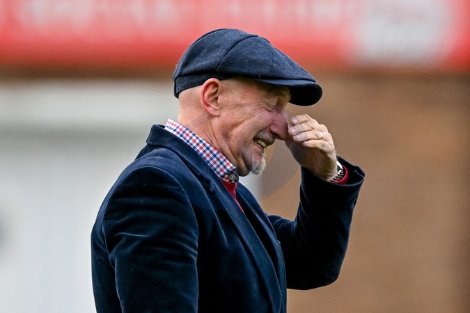 Ian Holloway, manager for Swindon Town, has a laugh during the Sky Bet League 2 match Fleetwood Town vs Swindon Town at Highbury Stadium, Fleetwood, United Kingdom, 15th November 2025, Credit:Adam Gee/News Images / Avalon