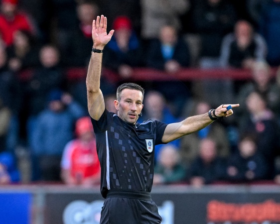 Referee Richard Eley during the Sky Bet League 2 match Fleetwood Town vs Swindon Town at Highbury Stadium, Fleetwood, United Kingdom, 15th November 2025, Credit:Adam Gee/News Images / Avalon
