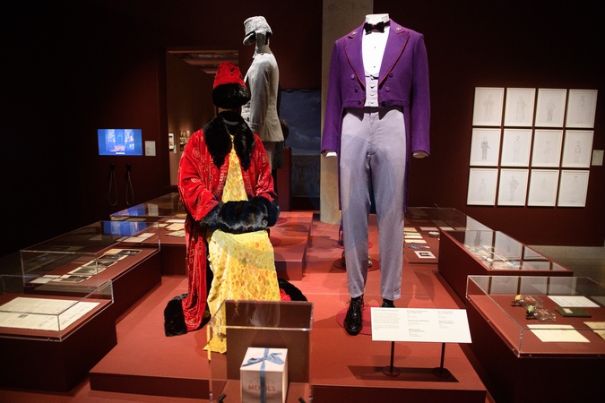 A staff member views Costumes from The Grand Budapest Hotel including a Monsieur Gustave Concierge Uniform worn by Ralph Fiennes, Agatha Costume worn by Saoirse Ronan at a photocall for The Design Museum's 'Wes Anderson: The Archives' Exhibition at The Design Museum in London, England, UK on Monday 17 November 2025. The exhibition runs from 21 November 2025 - 26 July 2026., Credit:Justin Ng / Avalon
