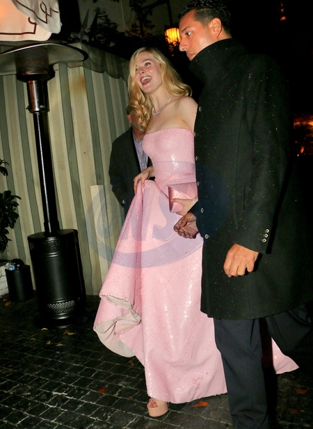 Elle Fanning leaves the Governor's Ball after party at Chateau Marmont, Los Angeles, USA, 16 November 2025., Credit:MHD / Avalon