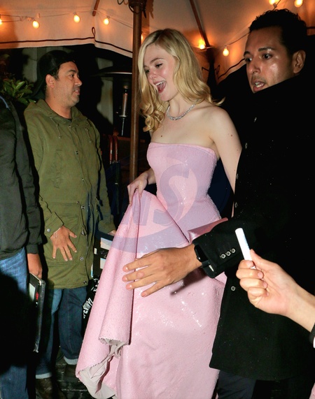 Elle Fanning leaves the Governor's Ball after party at Chateau Marmont, Los Angeles, USA, 16 November 2025., Credit:MHD / Avalon