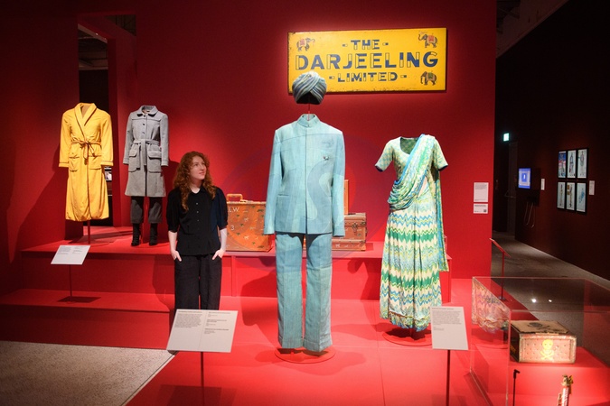 A staff member views The Darjeeling Limited's Staff Uniforms designed by Milena Canonero at a photocall for The Design Museum's 'Wes Anderson: The Archives' Exhibition at The Design Museum in London, England, UK on Monday 17 November 2025. The exhibition runs from 21 November 2025 - 26 July 2026., Credit:Justin Ng / Avalon