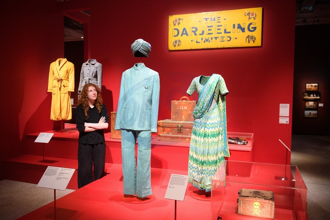A staff member views The Darjeeling Limited's Staff Uniforms designed by Milena Canonero at a photocall for The Design Museum's 'Wes Anderson: The Archives' Exhibition at The Design Museum in London, England, UK on Monday 17 November 2025. The exhibition runs from 21 November 2025 - 26 July 2026., Credit:Justin Ng / Avalon