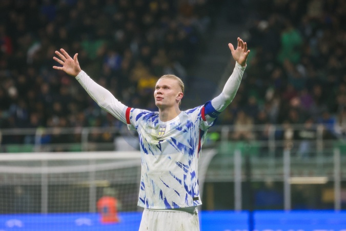 World Cup Qualifiers, Group I, Italy vs. Norway. Pictured: Goal by Erling Haaland (Norway). in Milan Nov 16th 2025, Credit:Fabio Sasso / Avalon