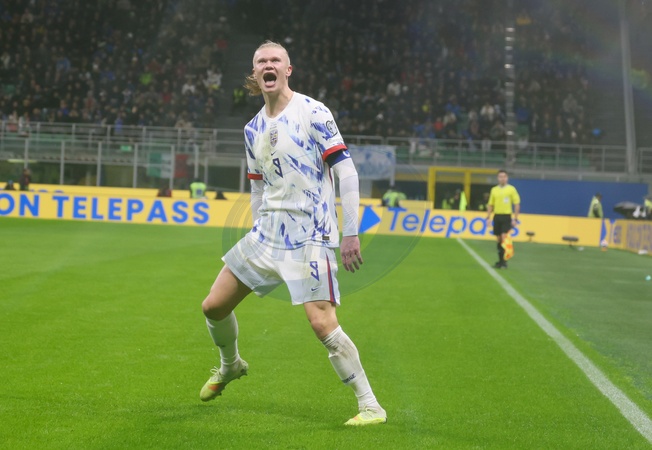 World Cup Qualifiers, Group I, Italy vs. Norway. Pictured: Goal by Erling Haaland (Norway). in Milan Nov 16th 2025, Credit:Fabio Sasso / Avalon