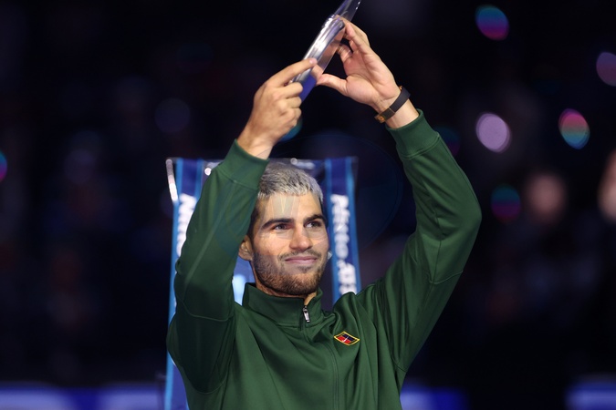 Nitto ATP Finals, Sinner wins the final against Alcaraz, in the photo Carlos Alcaraz with the cup in Turin Nov 16th 2025, Credit:Marco Canoniero / Avalon