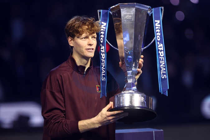 Nitto ATP Finals, Jannik Sinner wins the final against Alcaraz, pictured with the cup in Turin Nov 16th 2025, Credit:Marco Canoniero / Avalon