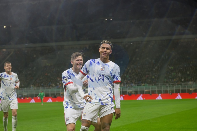World Cup Qualifiers, Group I, Italy vs. Norway. Pictured: Goal by Antonio Nusa (Norway). in Milan Nov 16th 2025, Credit:Fabio Sasso / Avalon