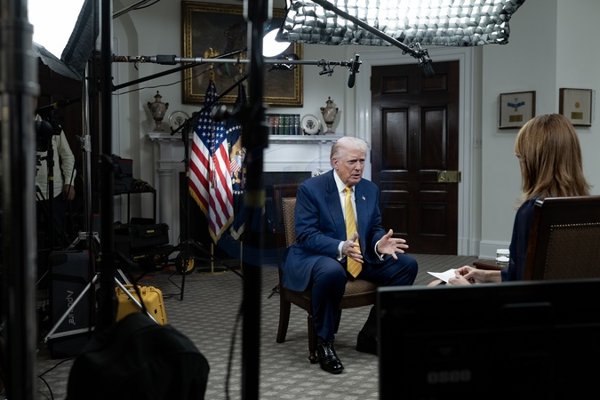President Donald Trump participates in an interview with Bev Turner of GB News on Friday, November 14, 2025, in the Roosevelt Room of the White House., Credit:Joyce N. Boghosian / Avalon
