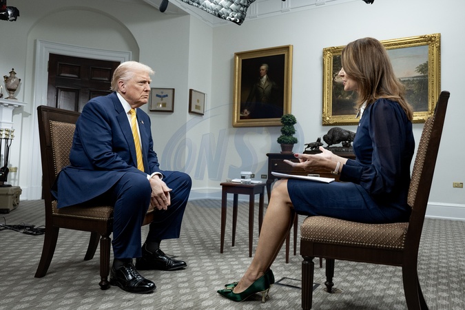 President Donald Trump participates in an interview with Bev Turner of GB News on Friday, November 14, 2025, in the Roosevelt Room of the White House., Credit:Joyce N. Boghosian / Avalon