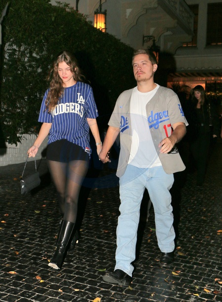 Dodgers fans Barbara Palvin and Dylan Sprouse leave Chateau Marmont, Los Angeles, USA, 28 October 2025., Credit:MHD / Avalon