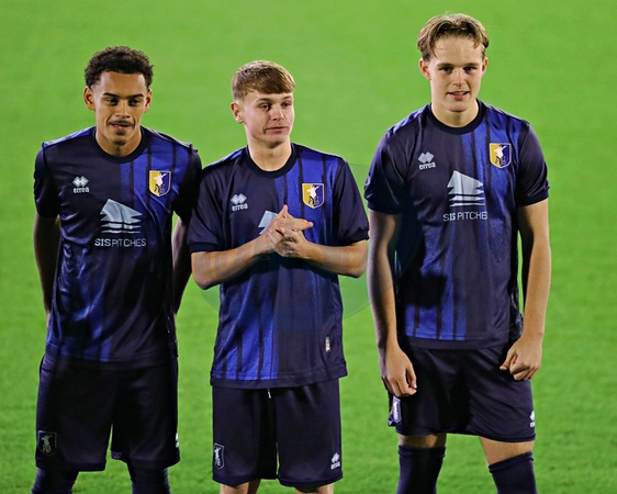 Joe Grant of Mansfield Town U18's, TJ Grimes of Mansfield Town U18's and Harley Mott of Mansfield Town U18's before the FA Youth Cup U18's round 2 match Barnsley vs Mansfield Town at Oakwell, Barnsley, United Kingdom, 17th November 2025, Credit:Sam Eaden/News Images / Avalon