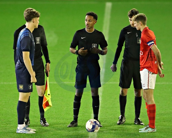The captains and match officials before the FA Youth Cup U18's round 2 match Barnsley vs Mansfield Town at Oakwell, Barnsley, United Kingdom, 17th November 2025, Credit:Sam Eaden/News Images / Avalon