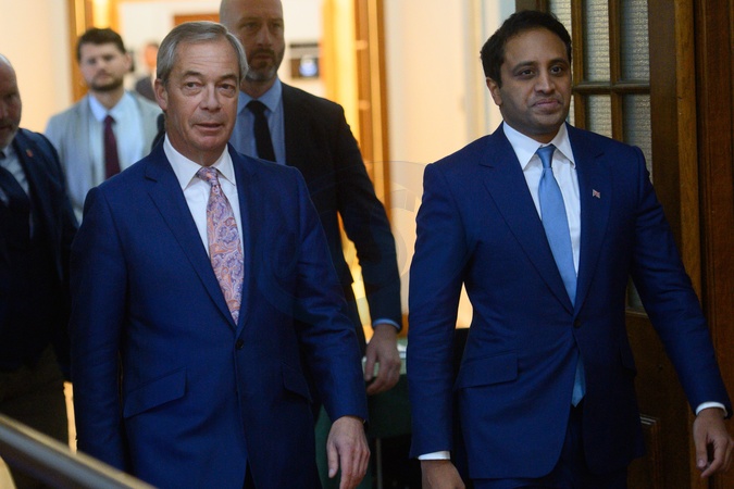 Reform UK Leader Nigel Farage and Reform UK Head of Policy/DOGE - Zia Yusuf arrives at a Press Conference at Church House, London, England, UK on Tuesday 18 November, 2025., Credit:Justin Ng / Avalon