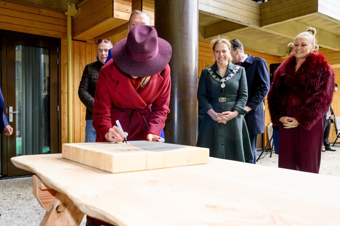 Queen Máxima opens circular wooden residential building SAWA, Rotterdam, The Netherlands