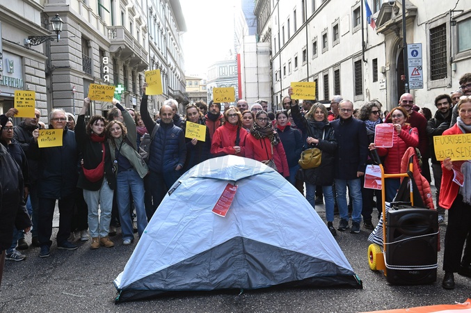 Flash mob demonstration by the Alliance for Housing, for the right to housing. Florence, Italy 18 November 2025, Credit:Aleandro Biagianti / Avalon