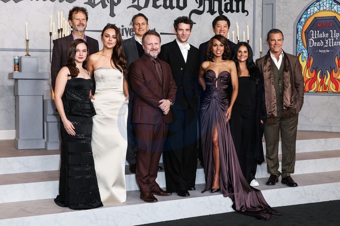 MUSEUM ROW, MIRACLE MILE, LOS ANGELES, CALIFORNIA, USA - NOVEMBER 17: American actress and singer Cailee Spaeny, Israeli film producer Ram Bergman, Ukrainian-American actress and model Mila Kunis, Ori Marmur, American filmmaker Rian Johnson, British actor Josh O'Connor, American actress and activist Kerry Washington, Dan Lin, Bela Bajaria and American actor Josh Brolin arrive at the Los Angeles Premiere Of Netflix's 'Wake Up Dead Man: A Knives Out Mystery' held at the Academy Museum of Motion Pictures on November 17, 2025 in Museum Row, Miracle Mile, Los Angeles, California, United States., Credit:Xavier Collin / Avalon