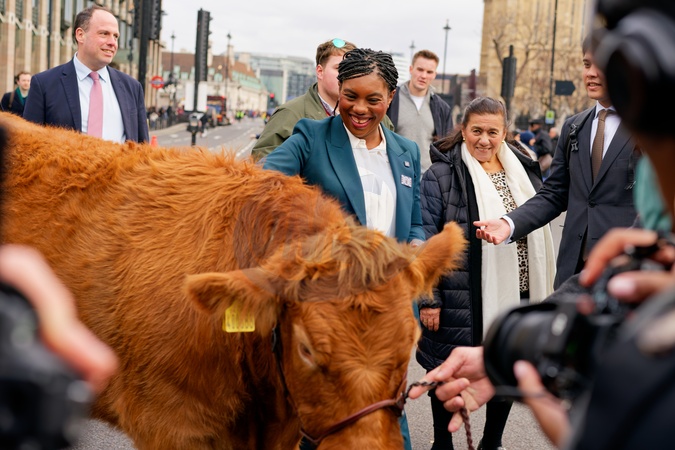 Kemi Badenoch at a farmers protest in Westminster.A small number of farmers stage a "Save Our Farms, Save Our Future" protest in Westminster. The Ulster Farmers' Union (UFU) are protesting ahead of the budget on 26 November in which the chancellor Rachel Reeves is proposing a new inheritance tax on farmers., Credit:Aldo Ciarrocchi / Avalon