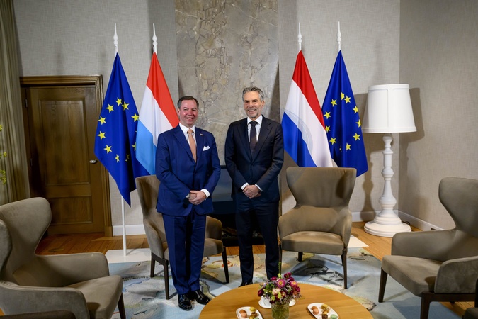 Den Haag, The Netherlands, 2025-11-19 10:08:32THE HAGUE, 19-11-2025, Catshuis. Prime Minister Dick Schoof receives Grand Duke Guillaume and Grand Duchess Stéphanie of Luxembourg at the Catshuis for a one-day visit. PHOTO: NLBeeld/Patrick van Emst, Credit:Avalon