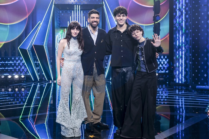 Rai, television program Sanremo Giovani, in the photo Gianluca Gazzoli with Angela Bova, Nicolo' Filippucci, Soap . Rome, Italy 18 November 2025, Credit:Cristiano Minichiello / Avalon
