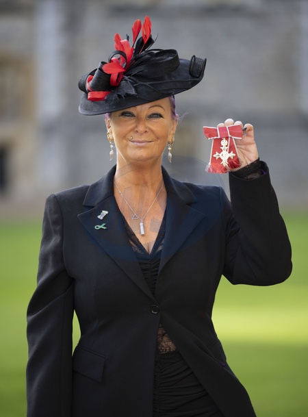 Image Licensed to i-Images Picture Agency. 19/11/2025. Windsor , United Kingdom. Charlotte Charles, the mother of motorcyclist Harry Dunn, with her MBE after an Investiture at Windsor Castle, United Kingdom., Credit:Stephen Lock / i-Images / Avalon