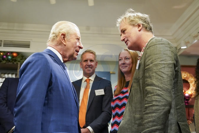 His Majesty The King marked the second.anniversary of the Coronation Food Project, bringing together Chief Executives and senior.leaders from Alliance Food Sourcing - a collaborative group which is leading to systemic.change in the food production and retail sector, rescuing thousands of tonnes more food for.communities in need. Fortnum & Mason, 181 Piccadilly, London W1A. The King with Charlie Bingham the ready food boss, Credit:Avalon.red / Avalon
