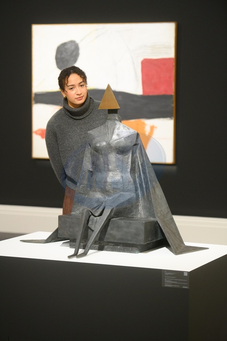 A staff member views 'First Girl Sitting on Bench' by Lynn Chadwick (est. £180k - £250k) which is to go on auction at Sotheby's Modern British and Irish Art Evening Auction on 25th November 2025 at Sotheby's, London, England, UK on Wednesday 19 November, 2025., Credit:Justin Ng / Avalon