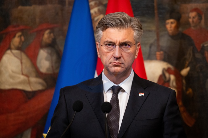 Prime Minister of the Republic of Croatia, Andrej Plenković addresses a press conference after the meeting with the Italian Prime Minister Giorgia Meloni, at Palazzo Chigi in Rome, Italy, on 19 November 2025., Credit:Stefano Costantino TTL / Avalon