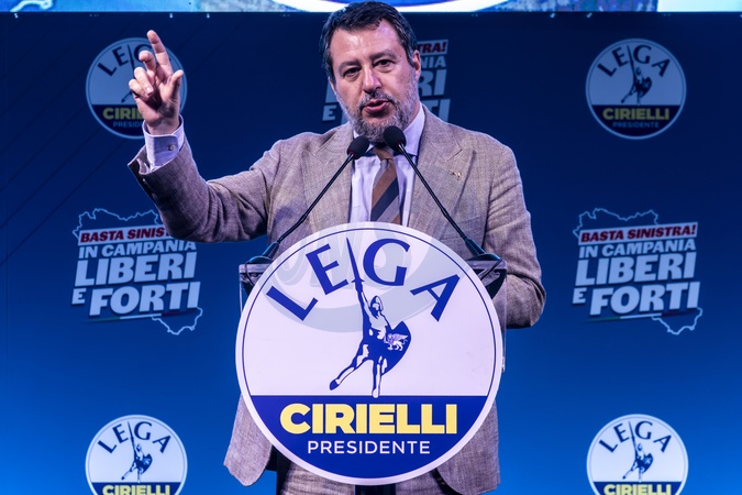 November 19, 2025, Naples, Infrastructure Minister Matteo Salvini at the Ricciardi Theater for the closing of the League's electoral campaign ahead of the regional elections., Credit:FPA/AGF / Avalon