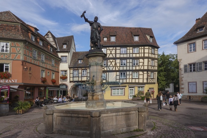 France, Alsace region, Colmar, Ancienne Douane Square, Schwendi Fountain - Photo Fabio Mazzarella/Sintesi *** Local Caption ***, Credit:Fabio Mazzarella / Avalon