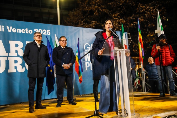 The national secretary of the Democratic Party Elly Schlein in Veneto at the regional rally closing Giovanni Manildo's electoral campaign in Mestre on the 19th Nov 2025, Credit:Mirco Toniolo / Avalon