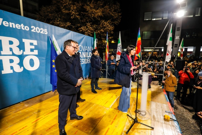 The national secretary of the Democratic Party Elly Schlein in Veneto at the regional rally closing Giovanni Manildo's electoral campaign in Mestre on the 19th Nov 2025, Credit:Mirco Toniolo / Avalon
