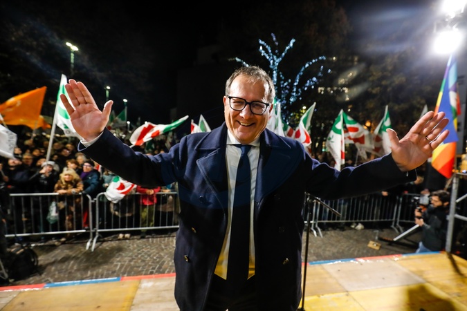The national secretary of the Democratic Party in Veneto at the regional rally closing Giovanni Manildo's electoral campaign in Mestre on the 19th Nov 2025, Credit:Mirco Toniolo / Avalon