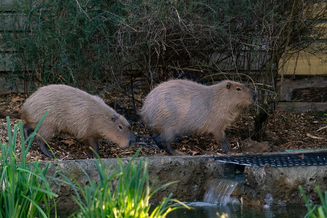 London Zoo unveils a luxurious new spa-inspired habitat for capybara siblings Gizmo and Kiwi, featuring two pools, mud wallows and climate-controlled zones. Shot in London, UK, on 21st November 2025.
