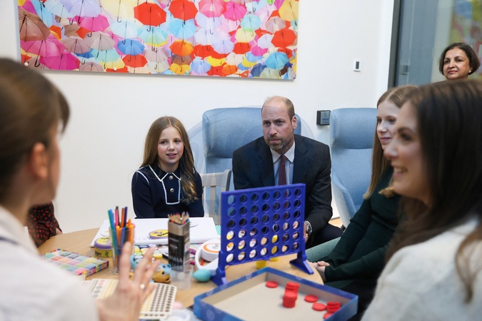 Britain's Prince William, Prince of Wales sits with Macy and Maya, the daughters of the late rugby league player Rob Burrow CBE, during a visit to the Rob Burrow Centre for Motor Neurone Disease at Seacroft Hospital, in Leeds, Britain, November 20, 2025., Credit:Temilade Adelaja / Avalon