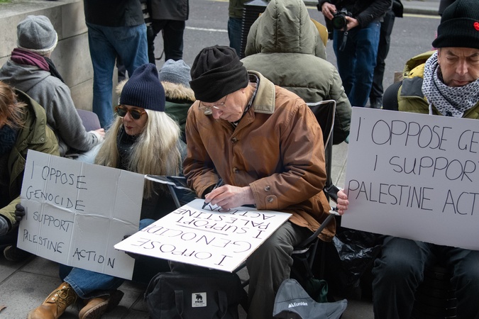 London, UK, 20th November 2025 - Defend Our Juries stage "Lift The Ban" protest outside Ministry Of Justice in support of the proscribed organisation, palestine action., Credit:Will Colebourne / Avalon