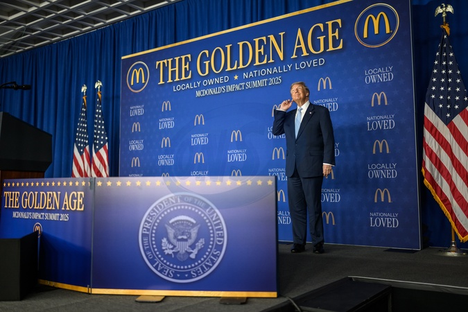 President Donald Trump arrives on stage to deliver remarks at the McDonald's Impact Summit, Monday, November 17, 2025, at the Westin D.C. in Washington, D.C., Credit:Daniel Torok / Avalon